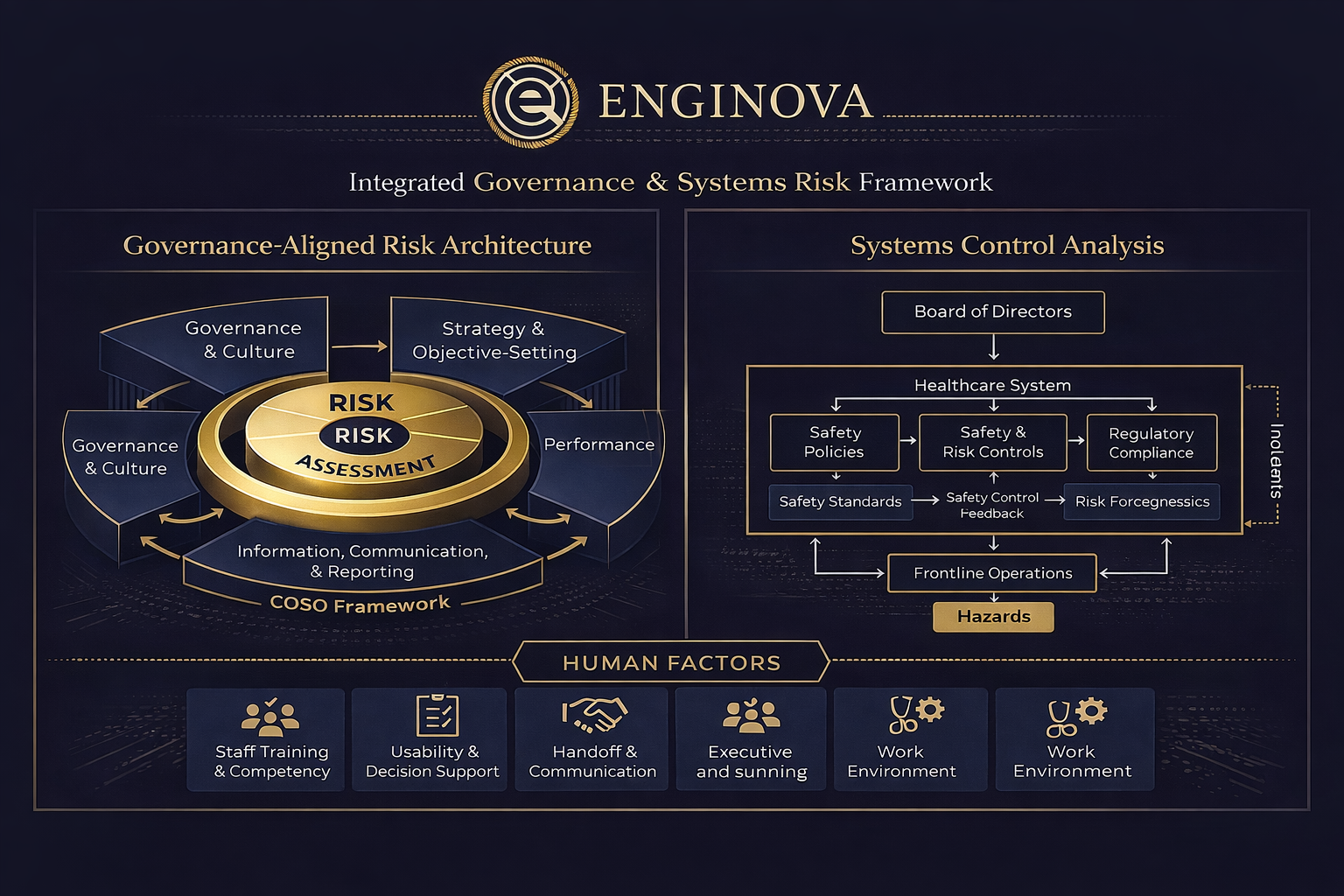 - Using systems analysis and human factors engineering, we examine handoffs, decision pathways, usability constraints, and governance mechanisms to identify vulnerabilities not visible through incident review alone.